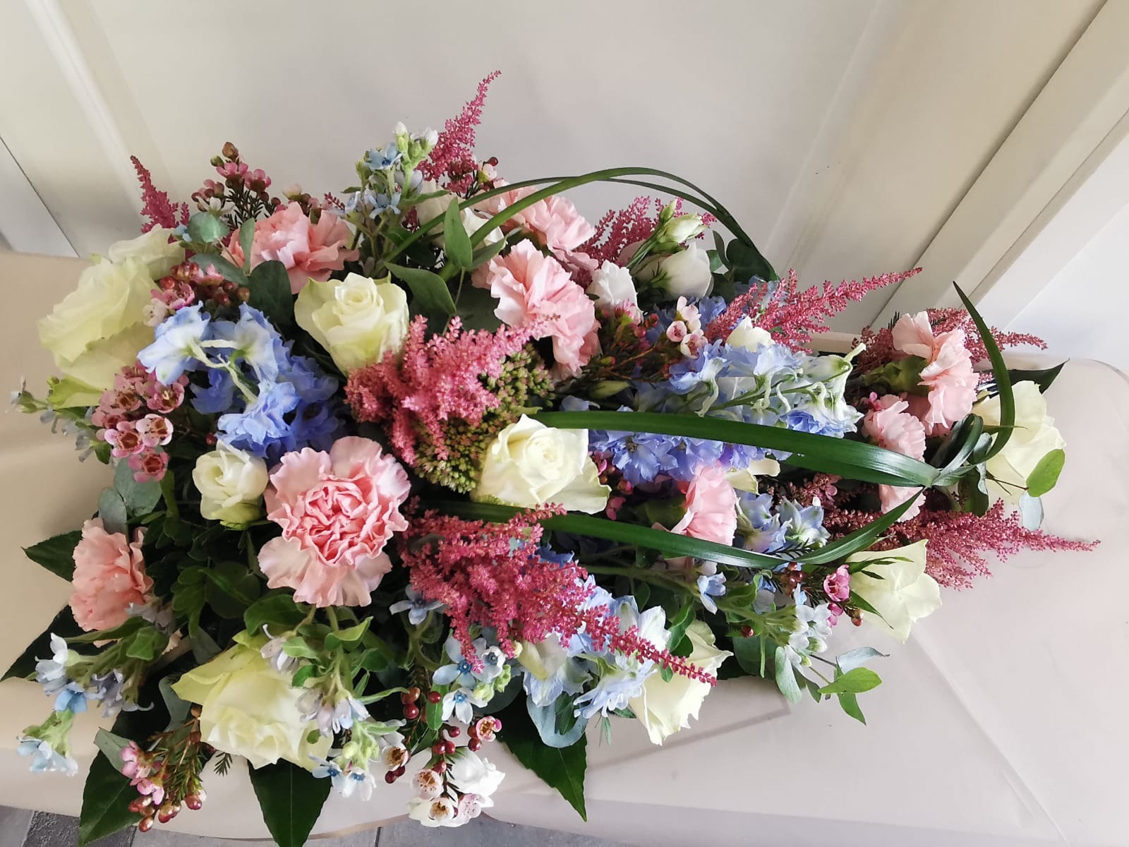 Todella herkkä ja kaunis surulaite. Siinä on vaaleita ja pastellisia sävyjä, jotka tekevät siitää arvokkaan mutta lempeän.